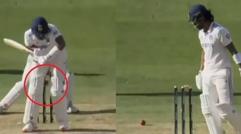 केएल राहुल का अजीब आउट, गेंद के दोनों पैरों के बीच से होकर गिरी विकेट पर
